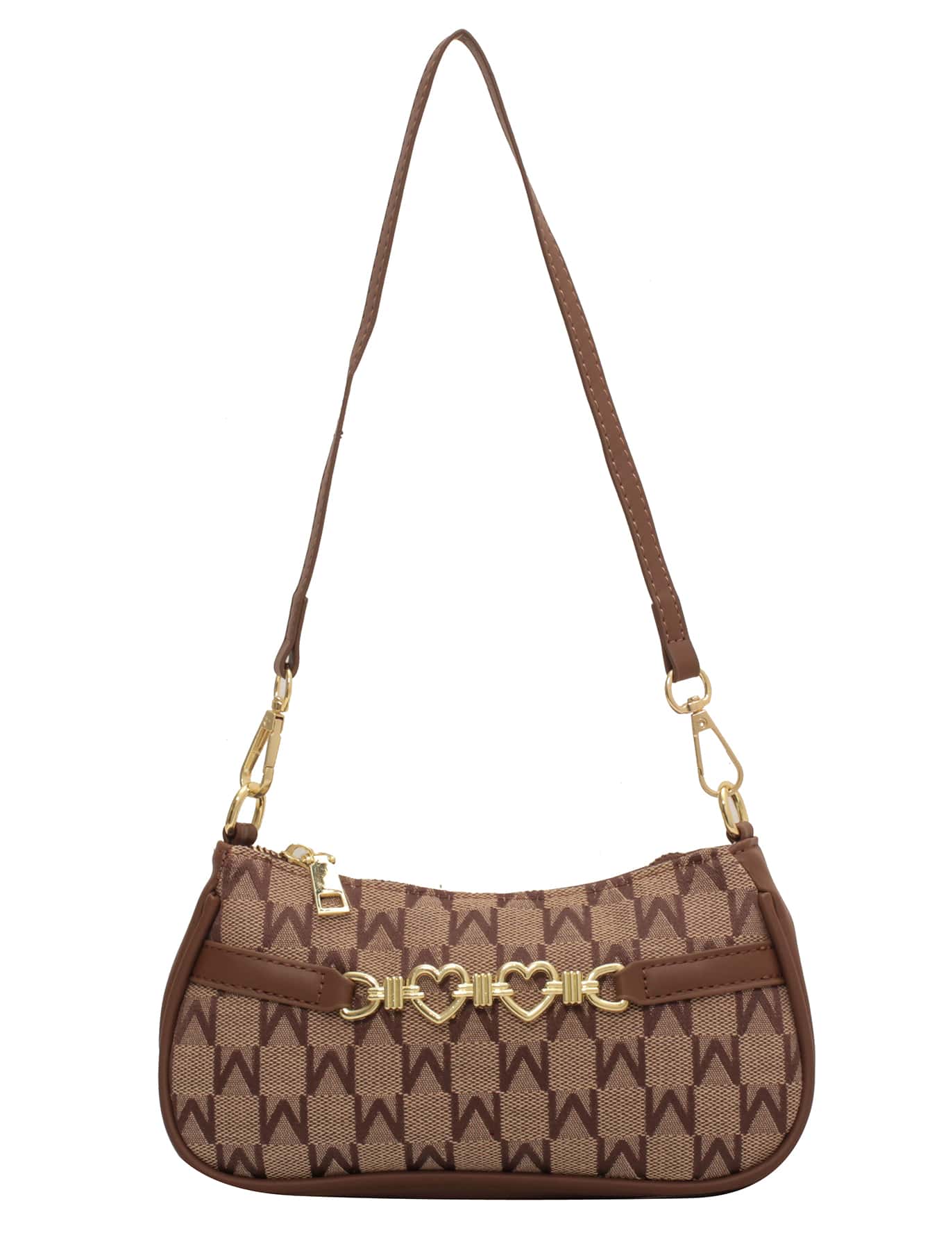 This small, fashionable baguette bag combines a colorful letter graphic heart design with a sleek black polyester body, ideal for casual shopping outings. Crafted from lightweight polyester, it offers durability without added weight. The ring strap and secure zipper closure add both style and practicality, making it a versatile shoulder or crossbody accessory for women and girls seeking a cute yet functional purse.