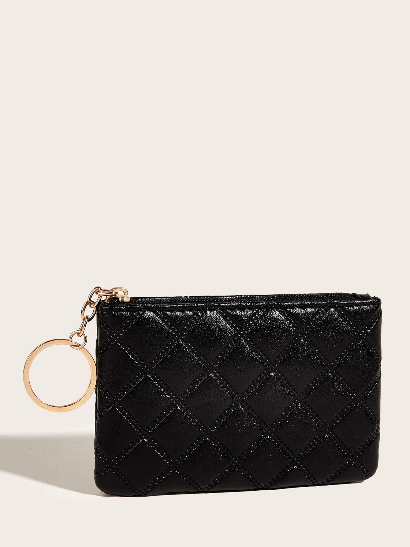 This compact women's wallet combines style and practicality with its geometric ironmongery design and lightweight PU leather construction. Featuring a secure zipper closure, it offers convenient storage for coins, cards, and keys in a sleek black finish. Perfectly sized for everyday use, this mini purse keeps essentials organized while complementing your fashion with understated elegance.